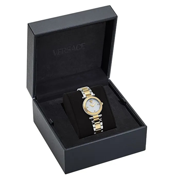 VRSCVEBFA0224 model kodlu bu Versace kadın kol saati, feminen çizgilerle modern lüksü birleştiriyor. Altın tonlu kasa ve bilezik tasarımı, zarafeti yansıtırken, kadrandaki ikonik Medusa motifi markanın ihtişamlı stilini tamamlıyor. Quartz mekanizması sayesinde dakik ve güvenilir zaman takibi sunar. Hem özel davetlerde hem günlük şıklıkta stilinize sofistike bir dokunuş katmak için ideal bir tercihtir.